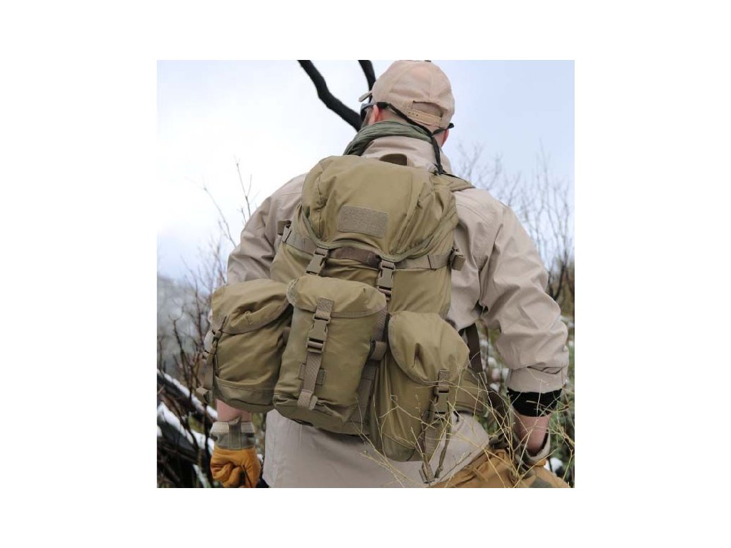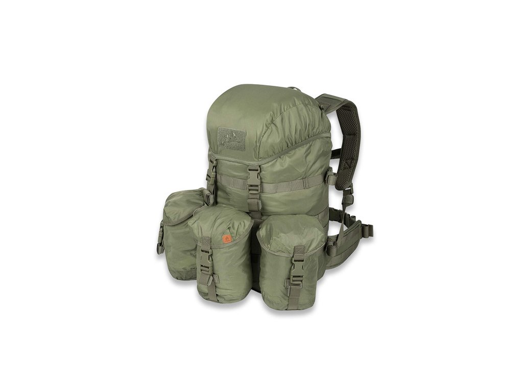 Batoh Matilda od Helikonu je navrhnutý s dôrazom na maximálnu funkčnosť a jednoduchosť. Má tri vonkajšie vrecká, každé vrecko je vybavené sťahovacou šnúrkou a viečkom na pracku. Veko batohu má dve vnútorné vrecká a pod nimi je ďalšie ploché sieťované vrecko na zips. Veko je zaistené dvoma prackami. Batoh je vybavený množstvom popruhov, takže je možné pripevniť prídavné sumky a komponenty kompatibilné s MOLLE systémom, dokonca aj vo vnútri. Dva kompresné popruhy na bokoch na uchytenie spacáku alebo karimatky. Pre zníženie hmotnosti je batoh zhotovený z materiálu Cordura 500D v kombinácii s nylonom 210D. To zaručuje odolnosť na najviac namáhaných miestach pri zachovaní nízkej hmotnosti. Nosný systém je v chrbtovej časti spevnený plastovou výstuhou. Chrbtový panel, ramenné popruhy aj bedrový popruh sú anatomicky tvarované a pokryté sieťovanou penou pre lepšie odvetrávanie. Bedrový popruh je odnímateľný a tiež vybavený MOLLE systémom.