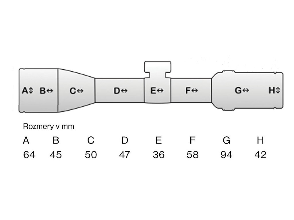 Vlastnosti: -mnohovrstevná optika, -podsvietená zámenná osnova L7, -oceľové telo, -použiteľný na všetky kalibre, -vodotesný-naplnený dusíkom. -výstupná pupila: 6 - 28 mm -vzdialenosť výstupnej pupily: 16,6 - 4,2 mm -relatívna svetelnosť: 13 - 25,9 -zorné pole na 100 m: 12,3 - 3,1 m -dioptrická korekcia: + 2 / - 3Dodatočné parametre