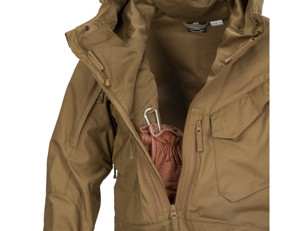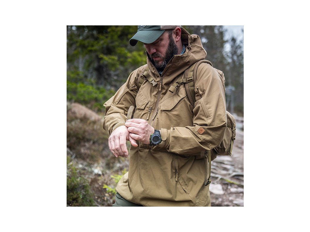 Anorak pilgrim od Helikontex je navrhnutý do náročných podmienok, aby vás ochránil aj v dynamicky sa meniacom počasí. Napriek tomu, že vychádza z tradičného anoraku používaného po celé desaťročia je navrhnutý tak, aby spĺňal očakávania modernej doby. Priestranné vrecká umožnia pohodlné vkladanie a vyberanie a ich usporiadanie zaručí nepretržitú dostupnosť vecí aj pri práci v sede, alebo pri kľačaní. Anorak je predĺžený (hlavne v zadnej časti) a tak lepšie chráni vaše telo. Pod pazuchami sú zipsy, ktoré slúžia na odvetrávanie v teplejšom počasí, predný zips sa vďaka konštrukcií Pilgrim dá rozopnúť viac ako klasické anoraky čo tiež prispieva k lepšiemu odvetrávaniu. Všetky zipsy na bunde sú od značky YKK. Na Anoraku Pilgrim je niekoľko stahovacích gumičiek a suchých zipsov pomocou ktorých si anorak vytvarujete tak aby vám dokonale sadol na postavu.
