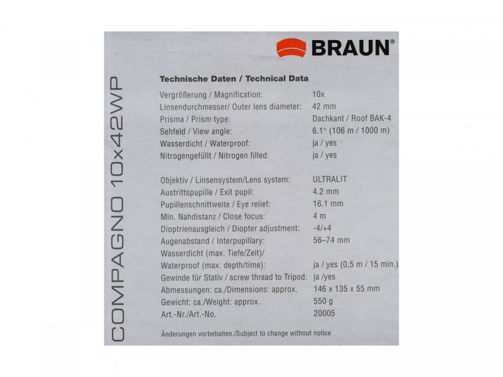 Ďalekohľad BRAUN Compagno 10x42 WP