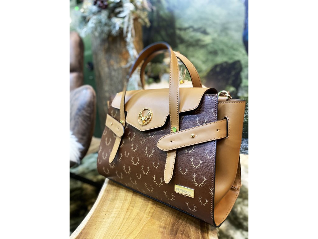 Zachyťte okamihy spoločne s klasickou kabelkou značky TETRAO, ktorá dokonale zvýrazní každý Váš outfit. Ukážte vašu lepšiu stránku a ukážte vašu úroveň. Pochváľte sa štýlom, ktorý každodenne tvoríte. Vďaka nami ponúkanej kabelke to bude mimoriadne jednoduché. Kabelka TETRAO je vyrobená z kože a doplnená krásnou pozlátenou brošňou v tvare jeleňa.