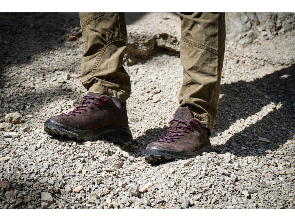 Dámska nízka vychádzková obuv TETRAO Canis LADY predstavuje precízne prepracovaný model, ktorý je vhodný na turistiku, do mesta alebo len tak na prechádzku Vďaka svojim vlastnostiam má celoročné využitie, či už do chladného počasia počas zimných mesiacov, alebo počas leta do miere nenáročných trekov. Podrážka Vibram Barwa má viacsmerové výstupky na zabezpečenie dokonalej priľnavosti pri stúpaní a zostupe. Obuv má schopnosť odolávať akýmkoľvek poveternostným podmienkam. V lete chladiaca vlastnosť pomôže nohám ľahko dýchať a počas chladných poveternostných podmienok vás obuv udrží v teple. Samotná konštrukcia tejto obuvi bola vytvorená tak, aby každému nositeľovi poskytovala ten najvyšší komfort a pohodlie počas celej doby nosenia.