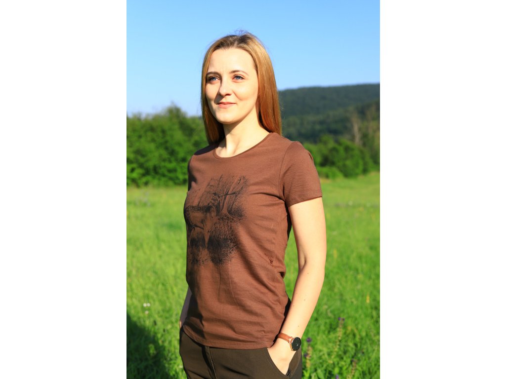 Dámske poľovnícke tričko TETRAO daniel veľký - hnedé XS
