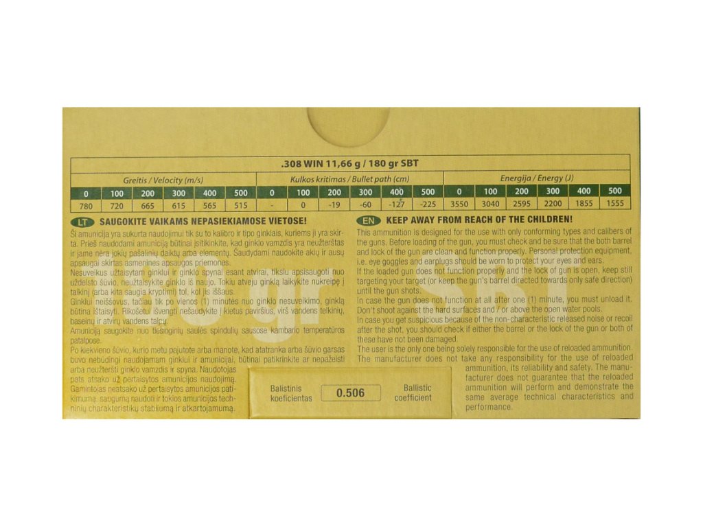 GGG .308Win. 180gr/11,66g SBT Sierra GameKing (GPX19)