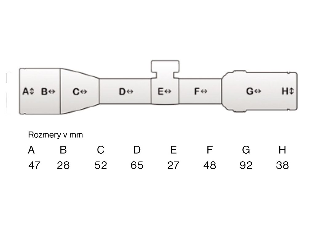 Vlastnosti: -mnohovrstevná optika, -zámenná osnova L4, -paralaxa od 10m, -oceľové telo, -použiteľný na všetky kalibre aj silné vzduchovky, -vodotesný, naplnený dusíkom.-výstupná pupila: 18,6 - 4,6 mm-vzdialenosť výstupnej pupily: 77 - 81 mm-relatívna svetelnosť: 11,2 - 19,4-zorné pole na 100 m: 4,7 - 13,3 m-dioptrická korekcia: +/- 2Dodatočné parametre