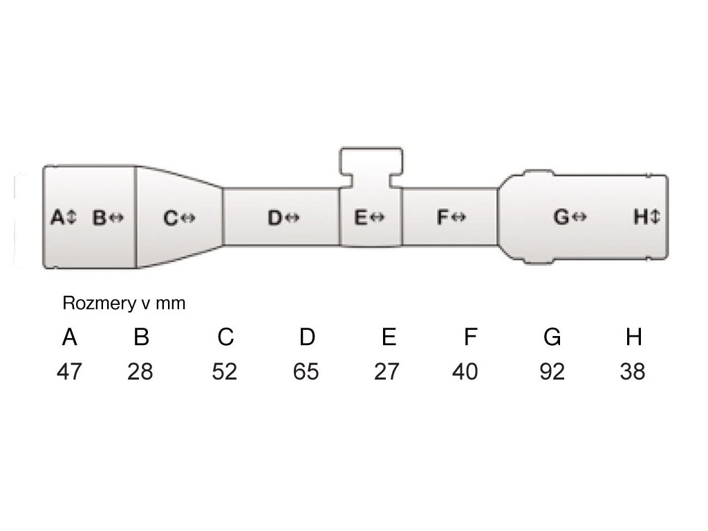 Vlastnosti: -mnohovrstevná optika, -zámenná osnova Mil-Dot, -paralaxa od 10m, -oceľové telo, -použiteľný na všetky kalibre aj silné vzduchovky, -vodotesný, naplnený dusíkom. -dodávaný spoločne s montážou BAU80120. -výstupná pupila: 18,6 - 4,6 mm -vzdialenosť výstupnej pupily: 77 - 81 mm -relatívna svetelnosť: 11,2 - 19,4 -zorné pole na 100 m: 4,7 - 13,3 m -dioptrická korekcia: +/- 2Dodatočné parametre