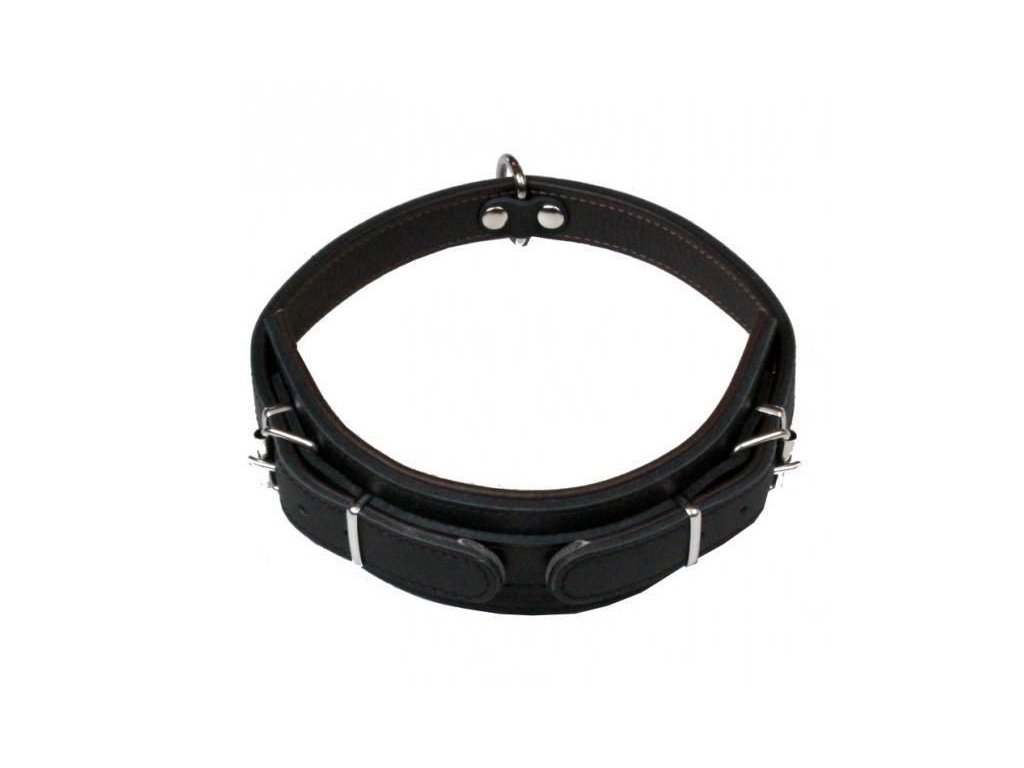 Kožený obojok obrana bez ucha pre psa - dĺžka 6 cm x 65 cm, (pre obvod krku od 53 cm do 65 cm) na každej strane obojku sú 4 dierky po 2 cm, farba čierna Pevná hovädzinová koža výborné kvality a jej kvalitné spracovanie zaručuje obojku vysokú úžitkovosť. Možnosť obojstranného povolenie / utiahnutie obojku.