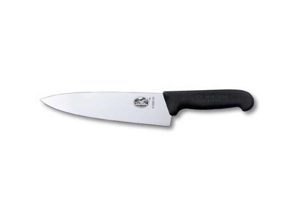 Kuchársky nôž s fibroxovou rukoväťou a extra vysokou čepeľou dĺžky 20 cm.