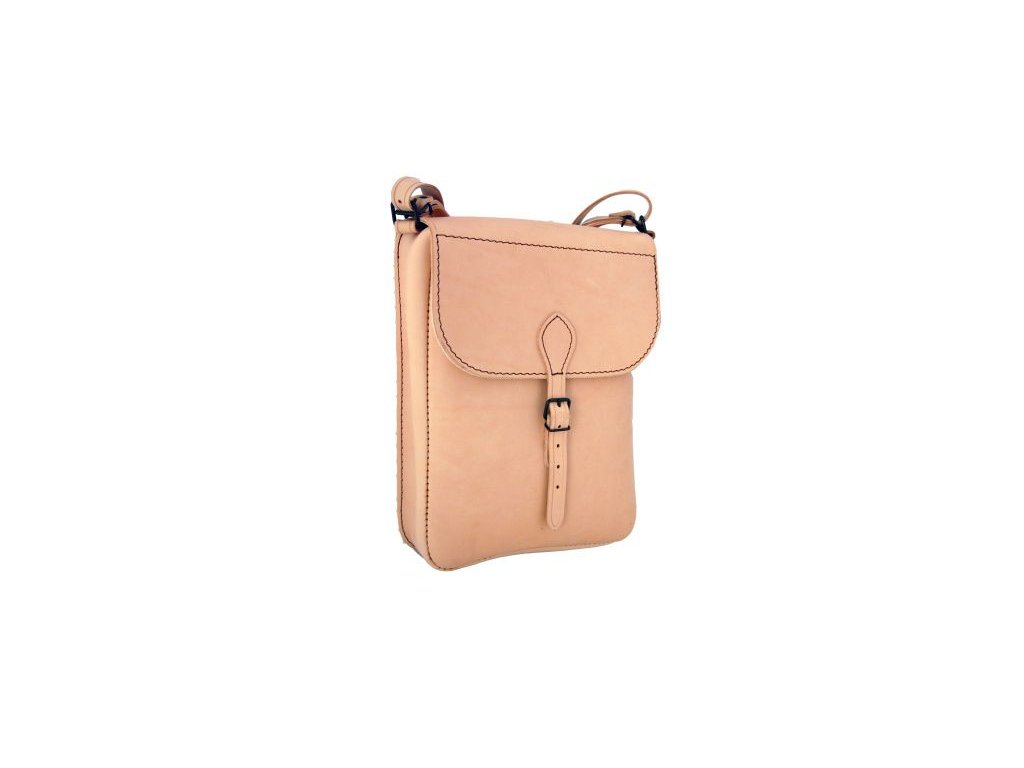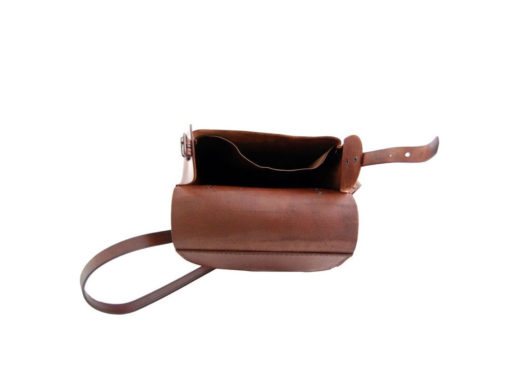 Kvalitná pevná odolná kožená lesnícka brašňa z hovädziny prírodnej farby.