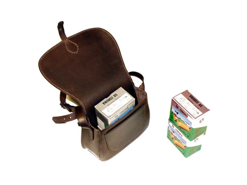 Kvalitná pevná odolná malá kožená lovecká brašňa z hovädziny.