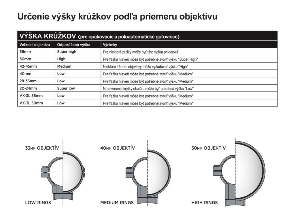 Výška krúžkov od základne je: Low: 6,8 mm Medium: 9,8 mm High: 12,8 mmDodatočné parametre