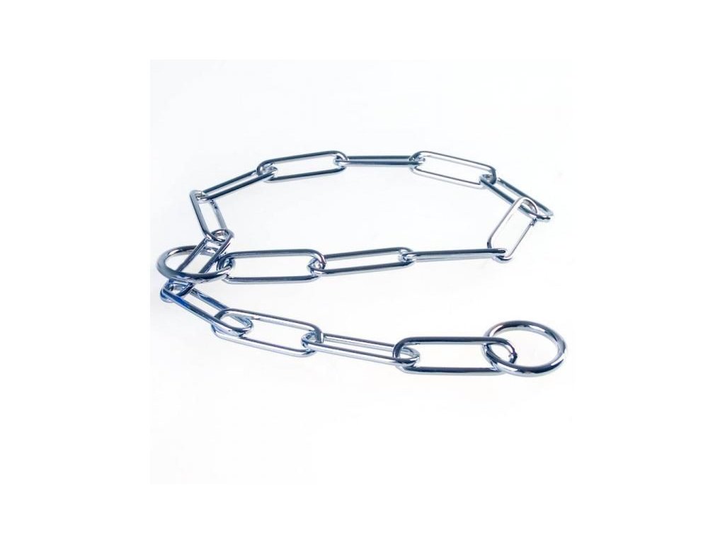 Retiazkový obojok pre psa - dĺžka 50 cm, dĺžka oválneho oka 3,8 cm, priemer kovového článku 4 mm. Sťahovací obojok má pevná zváraná oka s povrchovou úpravou chróm - znesie aj vysoké zaťaženie.