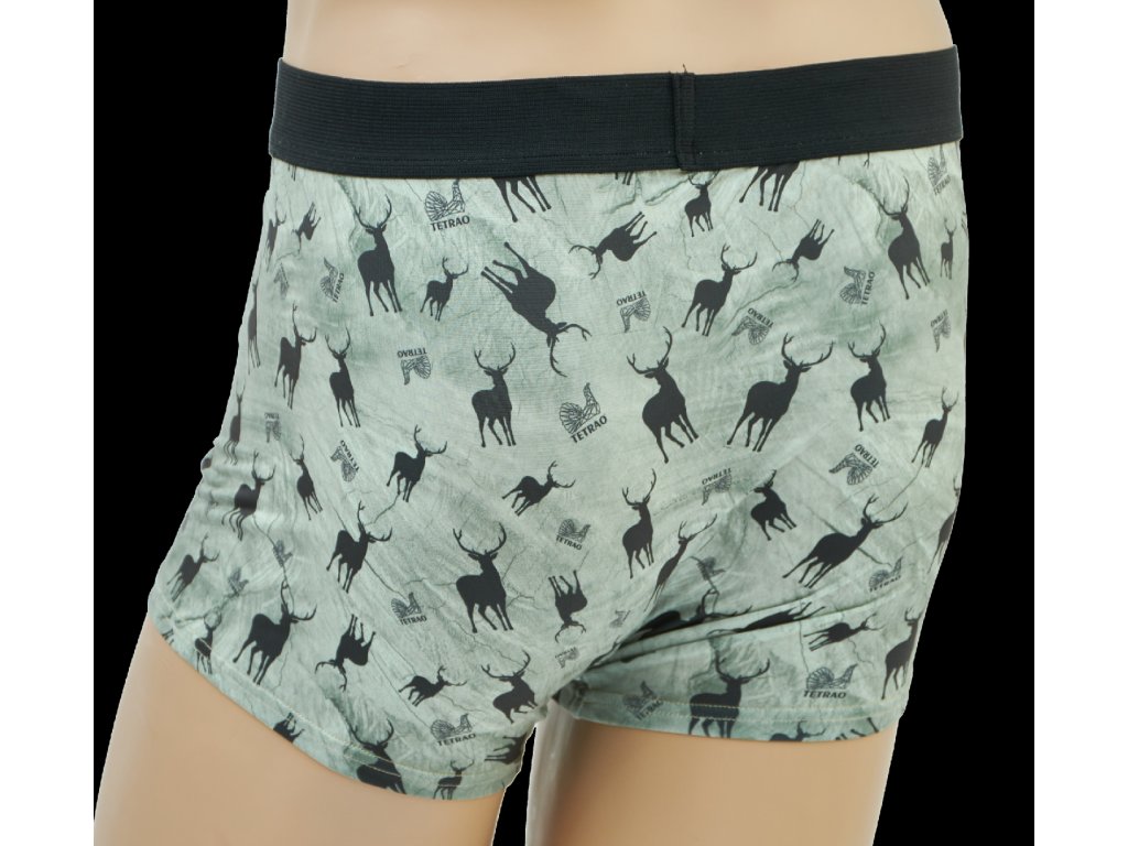 Pánske boxerky TETRAO s poľovníckym motívom - bledozelené s jeleňmi S