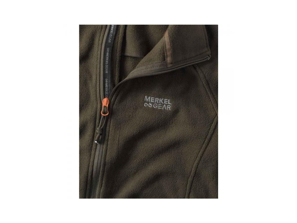 Funkčné tričko Merkel Gear je prvou vrstvou oblečenia, vhodnou pre celú poľovnícku sezónu. Jadro tejto fleeceovej bundy je novo vyvinutý fleece s vysokou hustotou, ktorý umožňuje výmenu vzduchu pozdĺž celej svojej konštrukcie, ale súčasne ukladá teplo vo svojich vzduchových kanálikoch. Funkčné tričko Merkel Gear Men je teda rovnako vhodné pre náročné poľovačky na horách ako aj dlhú turistiku a každodenné bežecké aktivity. Tričko je výrazne rozšírené vzadu, rúno udrží teplú oblasť krížov, ako je známe z mnohých ďalších búnd. Na boku sú dve skryté vrecká s mäkkými sieťovými vreckami zo sieťoviny, ktoré v prípade potreby umožňujú dodatočnú cirkuláciu vzduchu. Tričko má veľké náprsné vrecko a zipsy bez kovových častí.