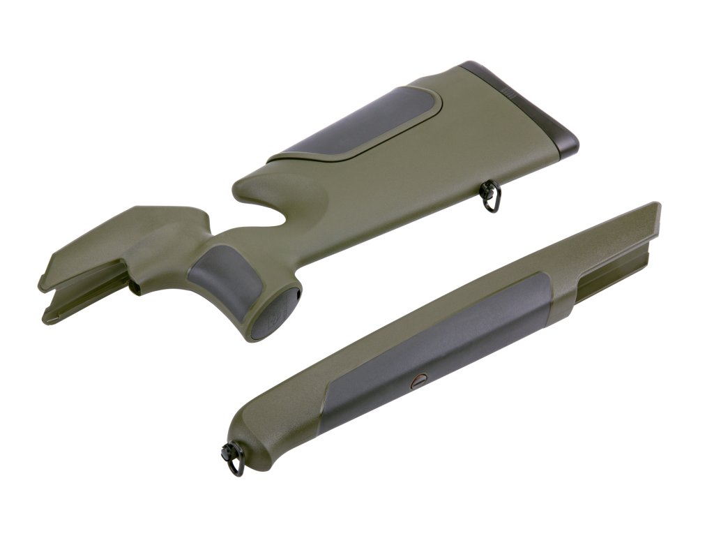 Pažba s novým revolučným syntetickým materiálom vystupuje v novom smerovaní ako lovecká puška. Vrcholom je otvorený OmegaGrip, ktorý umožňuje pohodlnejšie a pevnejšie držanie zbrane. Pretože dobrá ergonómia počas výstrelu je dôležitým faktorom pri presnosti. Novinkou je tiež automaticky nastaviteľná lícnica, ktorú je možné nastaviť vo výške stlačením tlačidla, čo je dôležitá výhoda pri rýchlom nastavení výšky lícnice.