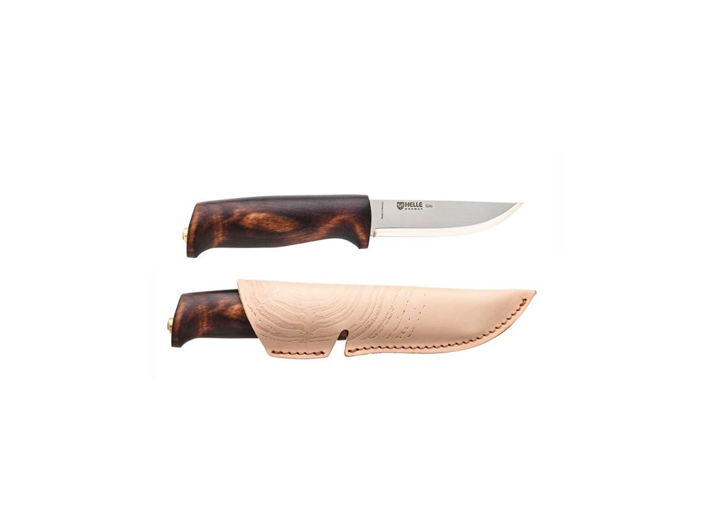 Nôž Gro je vyrobený tak, aby vás spájal s prírodou. Klasický nôž v škandinávskom štýle. Nôž Gro je krásny poľovnícky nôž strednej veľkosti so zámerom vyplniť medzeru medzi nástrojmi Spire a zvyškom rady nožov Helle. Rukoväť z brezového dreva bola našimi remeselníkmi tvarovaná a brúsená do konečného tvaru a zafarbená na tmavo. Tvar má ponúknuť bezpečné uchopenie bez toho, aby používateľa obmedzoval, ale umožňoval mu vyvíjať techniky vyrezávania. Čepeľ je dlhšia, čo znamená, že zvládne väčšie kusy dreva - alebo ťažšie práce okolo táboráka. Rukoväť je tiež dlhšia a ergonomicky prispôsobená pre väčšie ruky.