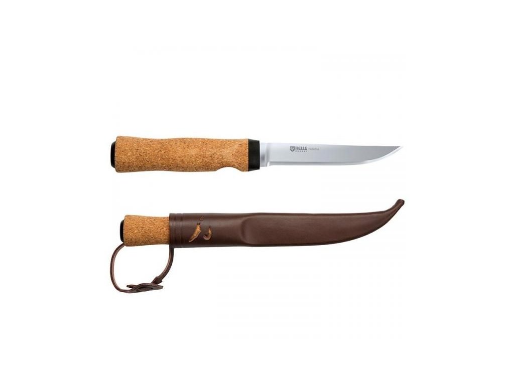 Nože svetoznámej značky Helle sú stále ručne vyrábané v Nórskej oblasti Sognefjorden (Holmedal). Pri ich výrobe sú používané staré tradičné postupy a len tie najkvalitnejšie materiály ako sú drevo, kosť, koža. Hellefisk je priamy rybolovný nôž s korkovou rukoväťou. Nehrdzavejúca čepeľ z ocele Sandvik 12C27 je tenká a tuhá. Nôž je veľmi ľahký, a dokáže plávať na vodnej hladine. Ušľachtilé nerezové ocele sú precízne kalené na tvrdosť 58 HRC. Vybrané modely nožov Helle majú čepele zhotovené sendvičovou metódou, keď čepeľ tvoria viacero druhov oceli. Stredný rezný plát ocele má vysokú tvrdosť a rezavosť (veľmi vysoká odolnosť proti opotrebovaniu). Druhý, v sendviči použitý materiál, nože sú tak odolné proti vyštrbeniu ocele a extrémne húževnaté, taktiež odolné proti zlomeniu noža a inému mechanickému poškodeniu. Nože Helle sú veľmi vhodné pre tú najnáročnejšiu prácu. Rukoväť noža je z švédskej brezy a je tlakovo impregnovaná proti vlhkosti. Nôž je dodávaný v exkluzívnom darčekovom balení vrátane kvalitného koženého púzdra, handričky na čistenie a certifikátu.