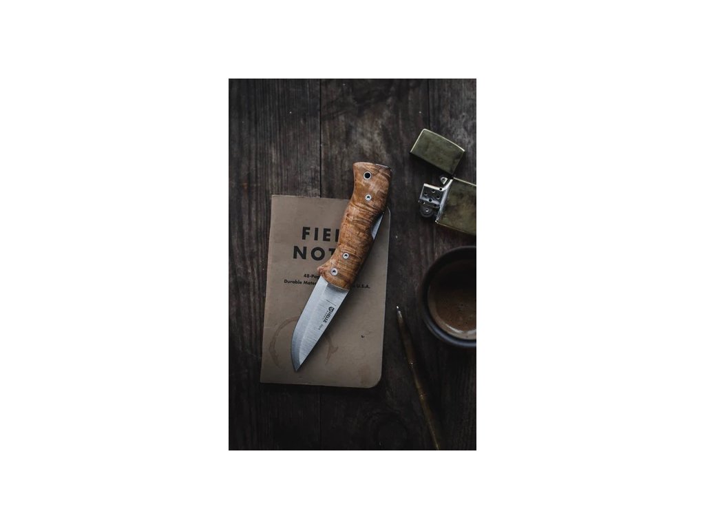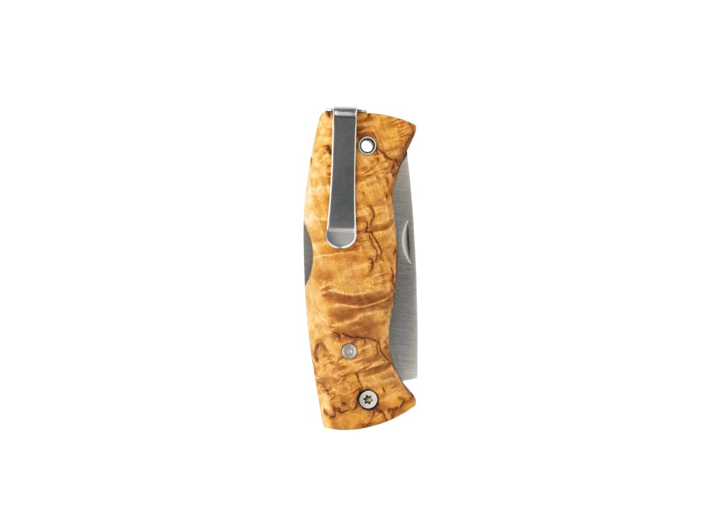 Na rukoväť bola tradične použitá ručne brúsená kučeravá breza. Je tvarovaná tak, aby sadla do akejkoľvek ruky a poskytovala vždy pevný úchop a stabilné rezanie. Aj v mokrých alebo spotených rukách. Dĺžka rukoväťe je 9,4 cm. Odolná čepel s neuveriteľne ostrou hranou pozostáva z nehrdzavejúcej ocele typu Sandvik 12C27. Dĺžka čepele je úctyhodných 69 mm. Nôž Nipa je vhodná pre každého na každodenné používanie alebo ako elegantný darček k výročiu či sviatku. Nôž je dodávaný v jedinečnom tubuse spolu s obrúskom.