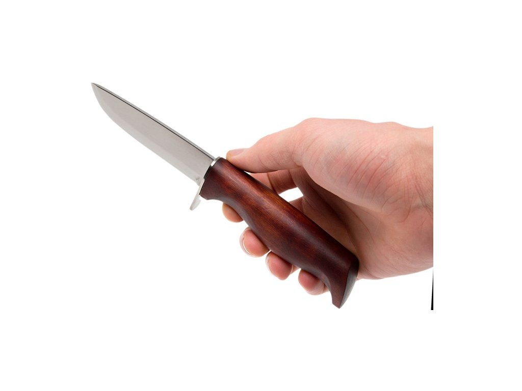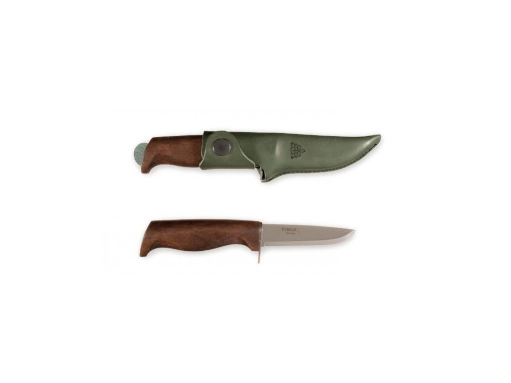 Všetky štandardné vlastnosti pevnej čepele Helle sú zastrčené do tohto kompaktného, ale robustného noža strednej veľkosti na každodenné nosenie. S čepeľou s bodom sklopenia vyrobeným z renomovanej trojitej laminovanej nehrdzavejúcej ocele Helle, škandinávskym brúsením a prírodným kučeravým brezovým drevom. Zakrútená štíhla rukoväť poskytuje pozitívnu kontrolu nad rezbou.