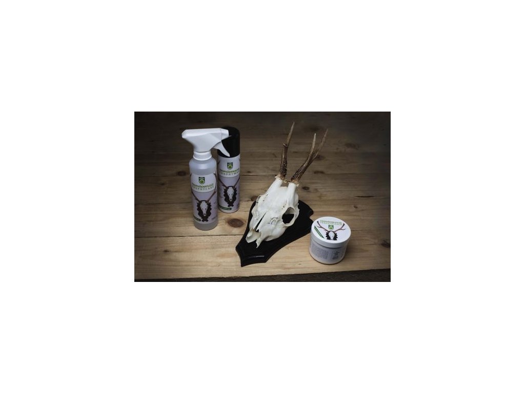 Tento prípravok sa postará o dokonalú starostlivosť vašej trofeje. Je vhodný ohľadom starostlivosti o lebku, rohov či parohov. Dodáva trofeji prirodzený vzhľad a nijako nemení farbu ani jej lesk.