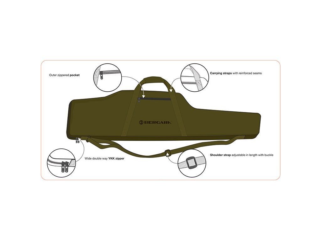 Puzdro na dlhé zbrane je vyrobené zo 100% Polyesteru, spolu s 15 mm hrubou penou. Pena má vysokú hustotu, ktorá poskytuje maximálnu ochranu zbrane pred nárazmi. V oblastiach ústia sa nachádza dodatočná výstuž, ktorá chráni tie najcitlivejšie časti zbrane. Vo vnútri puzdra sa nachádza upevňovací systém MOLLE, ktorý umožňuje viac polôh remienkov. Vďaka týmto remienkom sa dá prispôsobiť rôznym puškám a puškohľadom. Puzdro je vybavené vonkajším priestorom, dvojcestným a širokým zipsom YKK, nosnými popruhmi, ktoré majú zosilnené švy a popruh na rameno. Popruh je nastaviteľný pomocou spony.