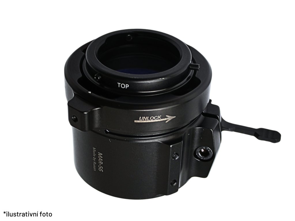 Jednoduché nasadenie spočíva v upevnení objímky na puškohľad a otočením predsádky s nasadeným redukčným krúžkom. Pomocou šikovnej funkcie zamknutia predsádku upevníte na mieste. Zloženie je potom úplnou hračkou! Objímku môžete nechať pohodlne pripevnenú na puškohľade, zatiaľ čo otočením odomknete a zložíte prístroj s redukciou.