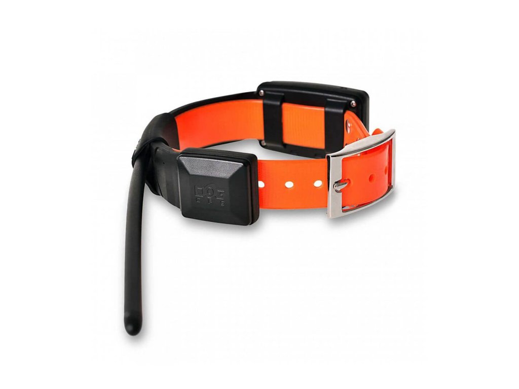 GPS obojok pre psov s výcvikovým modulom. Umožňuje aktivovať upozornenia vo forme bezpečných stimulačných impulzov vysielaných dvoma kontaktnými bodmi.