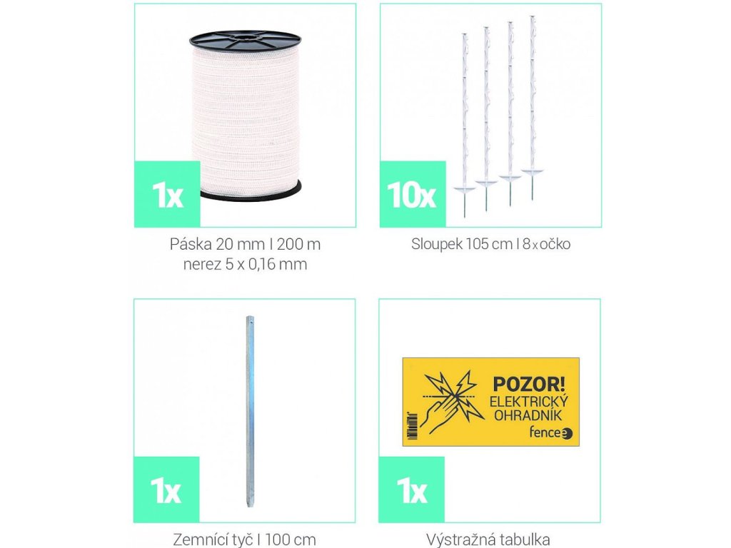 Kompletná sada vhodná pre kratšie ohrady, s kombinovaným zdrojom Power DUO PD10, s nezávislým zdrojom energie. Týmto elektrickým ohradníkom vymedzuje pre zvieratá bezpečný priestor, kde sa môžu voľne pohybovať alebo naopak zámedzí vstupu zvierat do niektorých vedľajších miest. Určené pre vymedzenie priestoru až do 200 m obvodu a výška ohradenie až 86 cm. Praktické, mobilné, jednoduché na sprevádzkovanie. Základom je kombinovaný generátor fencee Power DUO PD10, ktorý je univerzálne použiteľný pre krátke, stredné aj dlhé ohrady do 8 km a je vhodný pre citlivejšie i menej citlivé zvieratá ako sú kone, dobytok, koza, hydinu aj ako ochrana pred zverou alebo drobnými škodcami. Napájanie je možné zo siete 230 V pomocou adaptéra alebo z bežnej 12 V batérie, použiteľné aj ako záložný zdroj. LED kontrolky a bargrafom na prednej strane generátora zobrazujú prevádzku zdroja, meria napätie na ohrade a také signalizujú prípadných porúch na ohradníka. Automatická optimalizácia prevádzky, možnosť prepnutia výkonu aj veľmi nízka spotreba sú ďalšie prednosti tohto generátora. Sieťový adaptér je súčasťou balenia.