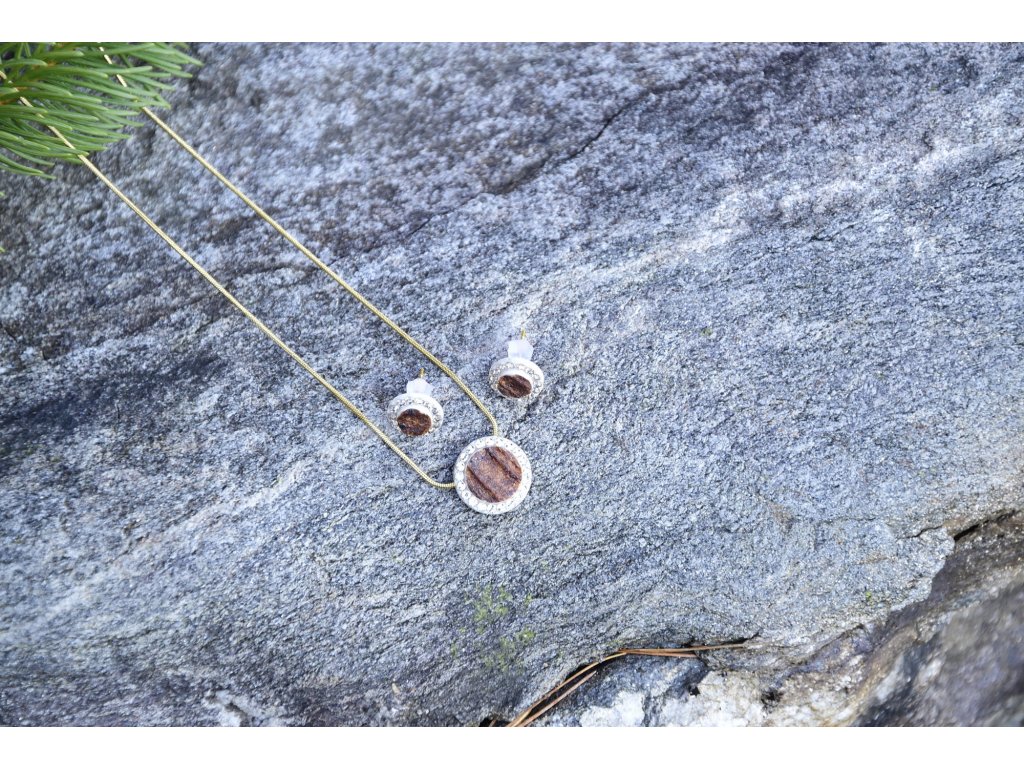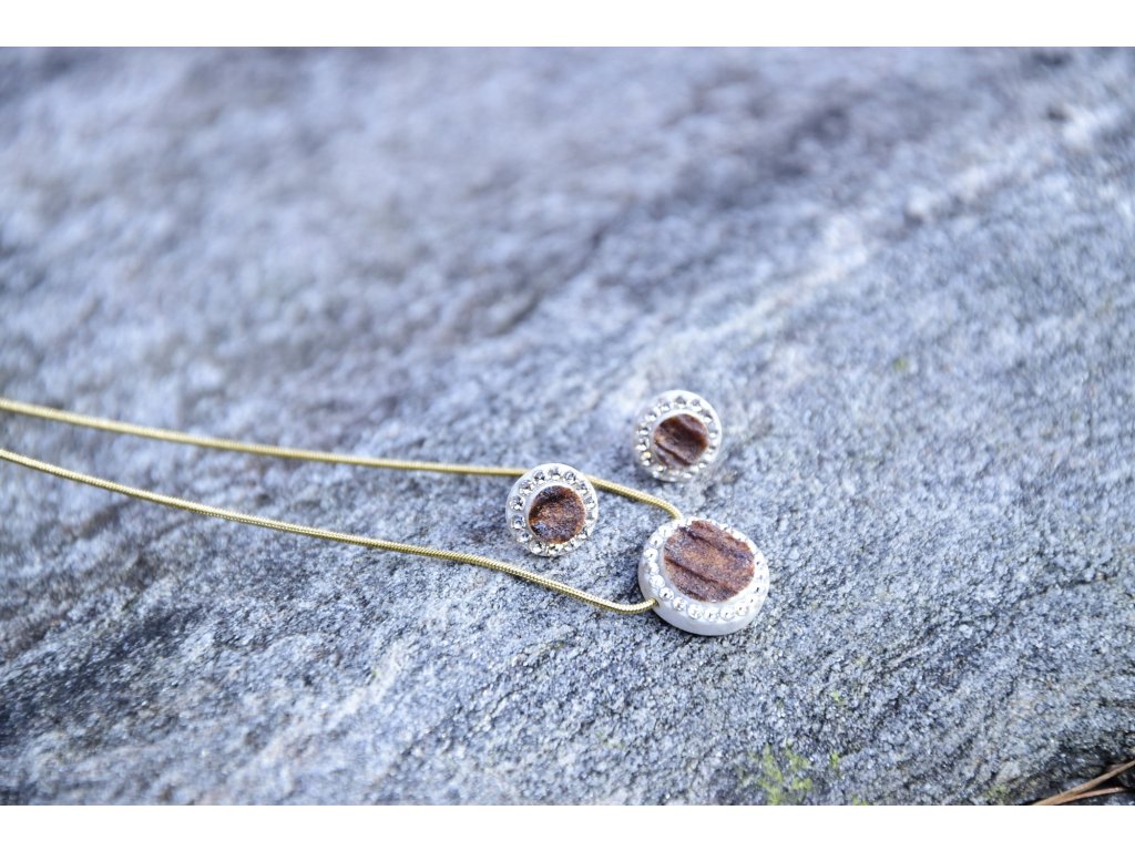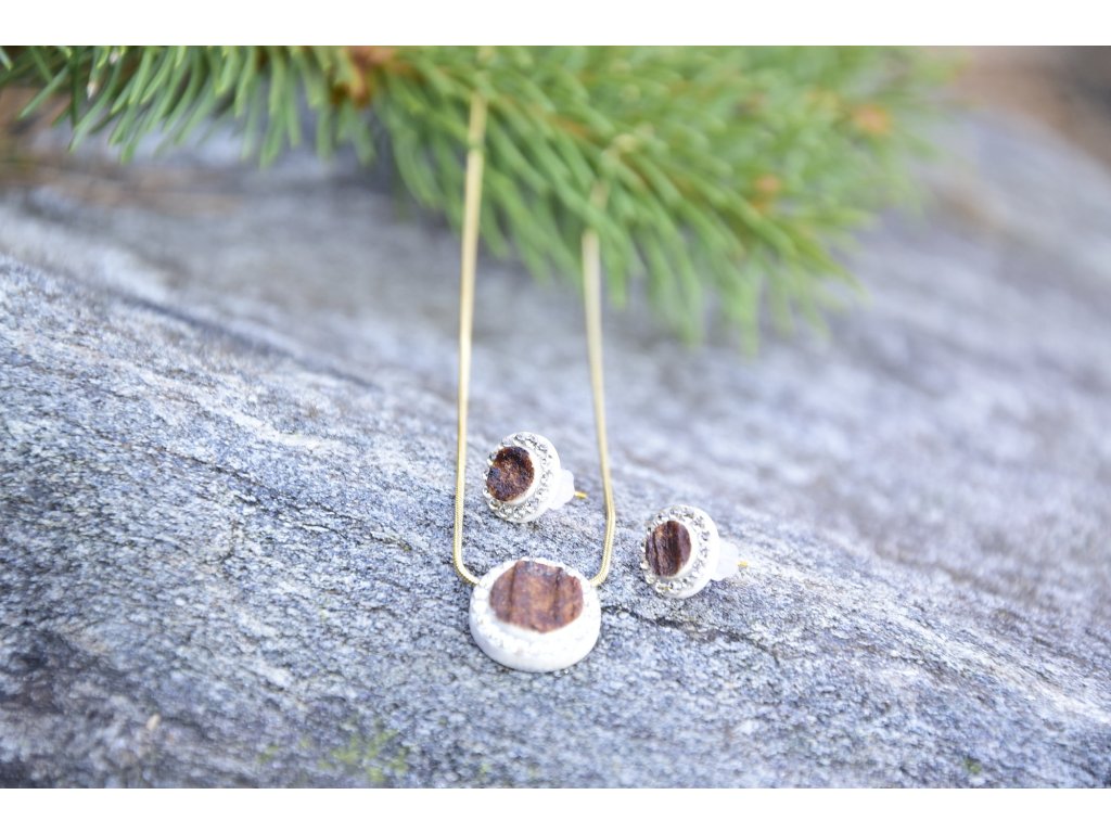 Set poľovníckych šperkov z parožia TETRAO v zlatej farbe - náhrdelník + náušnice krúžok