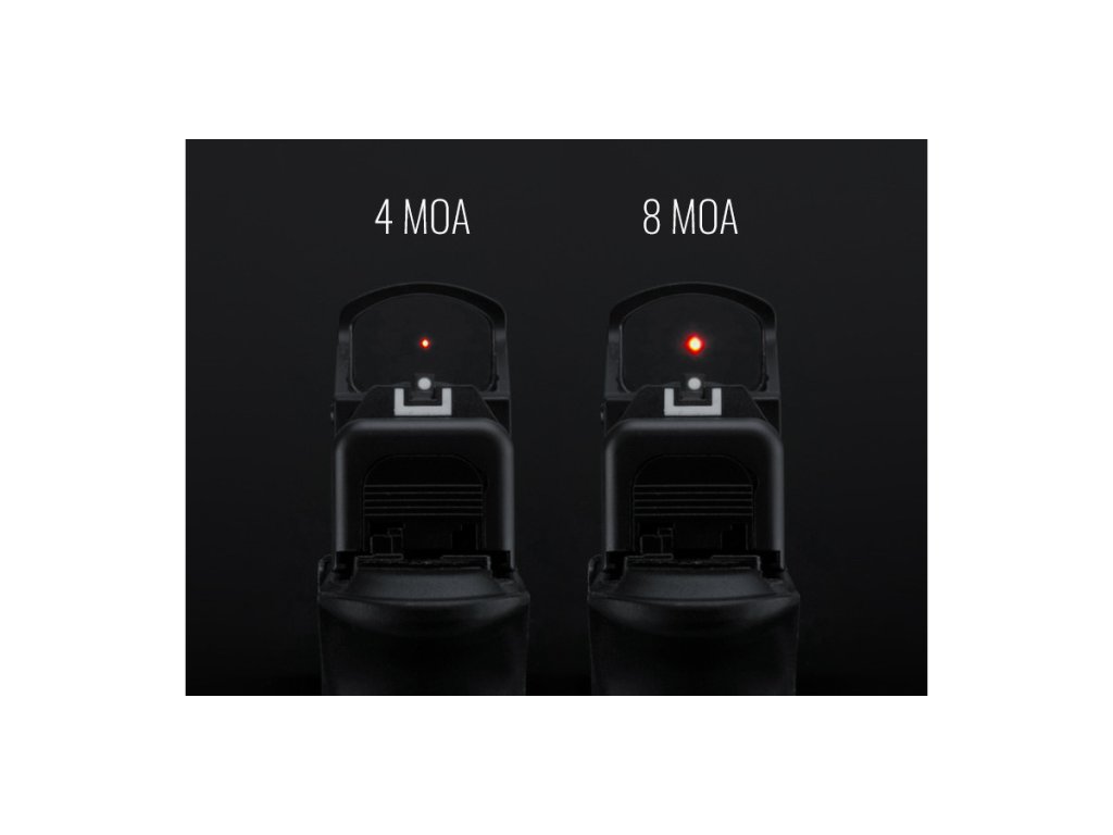 Úsporná červená LED s premenlivou intenzitou (žiadny laser), prispôsobuje úroveň svetla podľa okolitých podmienok, čo poskytuje optimálnu viditeľnosť zámerného bodu proti cieľu a predlžuje životnosť batérie. Rozsah jasu: Najnižší - kompatibilný s nočným videním. Najvyšší - viditeľný proti oblohe za jasného denného svetla. Montáž priamo na pištol alebo cez príslušnú montážnu platničku. Pri výmene batérie je nutná demontáž kolimátoru zo zbrane. PARAMETRE: Veľkosť zámerného bodu: 4 MOA Konštrukcia: letecký hliník Šošovka: polymer + Si02 Quartz Úprava jasu: automatická Odolnosť voči dažďu: áno Vodotesnosť: nie Napájanie: 3V lithiová batéria CR2032 Výdrž: 12 až 36 mesiacov (v závislosti od svetelných podmienok) Rozmery: 40 x 23 x 22 mm (dĺžka x šírka x výška) Hmotnosť vrátane batérie: 16.4 gDodatočné parametre