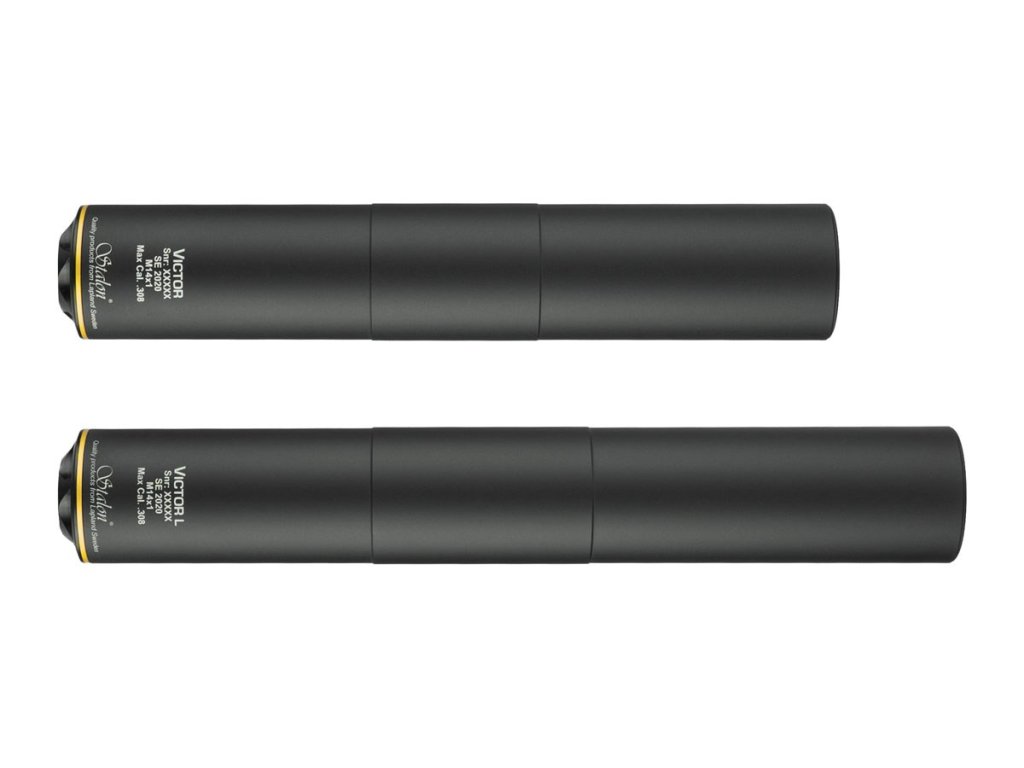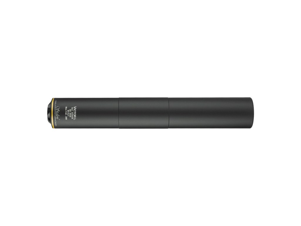 Séria VICTOR Séria VICTOR pozostáva z dvoch jedinečných modelov s rôznou dĺžkou, hmotnosťou a výkonom. Spoločným znakom oboch modelov je ich štíhly dizajn (d= 41mm), nízka hmotnosť a vynikajúca redukcia zvuku v porovnaní s ich veľkosťou. Pevná konštrukcia tlmičov VICTOR neumožnuje zmenu kalibru ani závitu, preto sa nedajú meniť ani kombinovať. Na oplátku poskytujú lepší celkový výkon v pomere k svojej veľkosti. Vo všeobecnosti je séria VICTOR ideálnou voľbou pre menšie a štandardné kalibre ako 6.5 CD, .243 WIN alebo .223 REM. PARAMETRE: Max. kaliber: .30 Max. priemer hlavne: 22.5 mm Útlum hluku: -32.5 dBc (0.308) Priemer: 41 mm Dĺžka: 258 mm (zasadenie 95 mm / predĺženie hlavne 163 mm) Materiál - telo: Eloxovaný vysokokvalitný hliník Materiál - závit: Nerezová oceľ Materiál - prvá prepážka: Nerezová oceľ Materiál - ostatné prepážky: Eloxovaný vysokokvalitný hliník Farba: Matná čierna so zlatým krúžkom v zadnej časti Hmotnosť: 325 gDodatočné parametre
