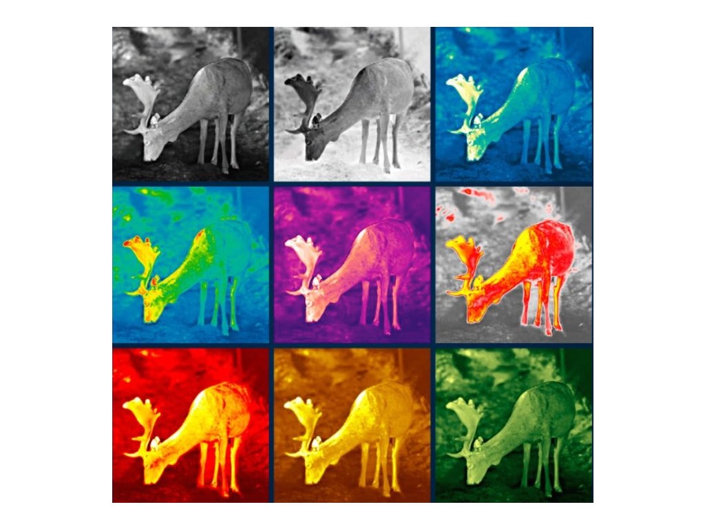 Palety White Hot, Black Hot a Red Hot sú ideálne na detekciu objektov, zatiaľ čo Rainbow a Ultramarine zvyšujú šance na ich rozpoznanie a identifikáciu.
