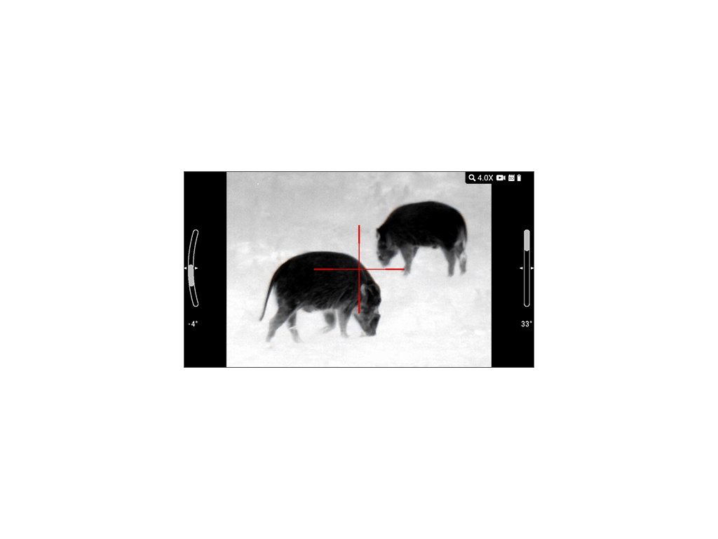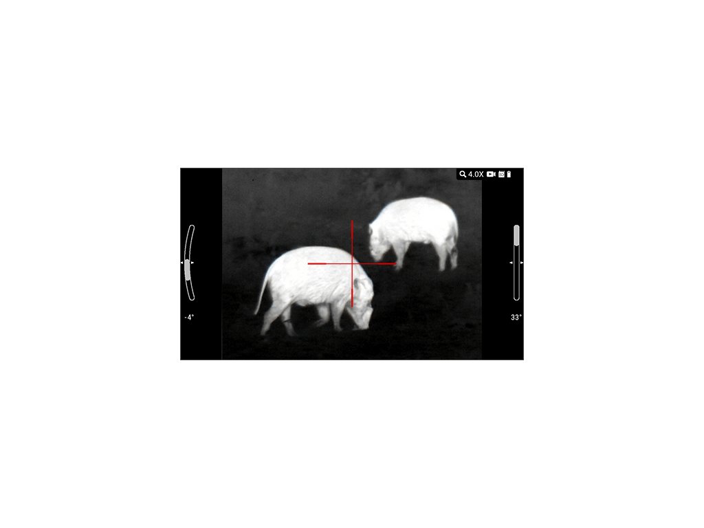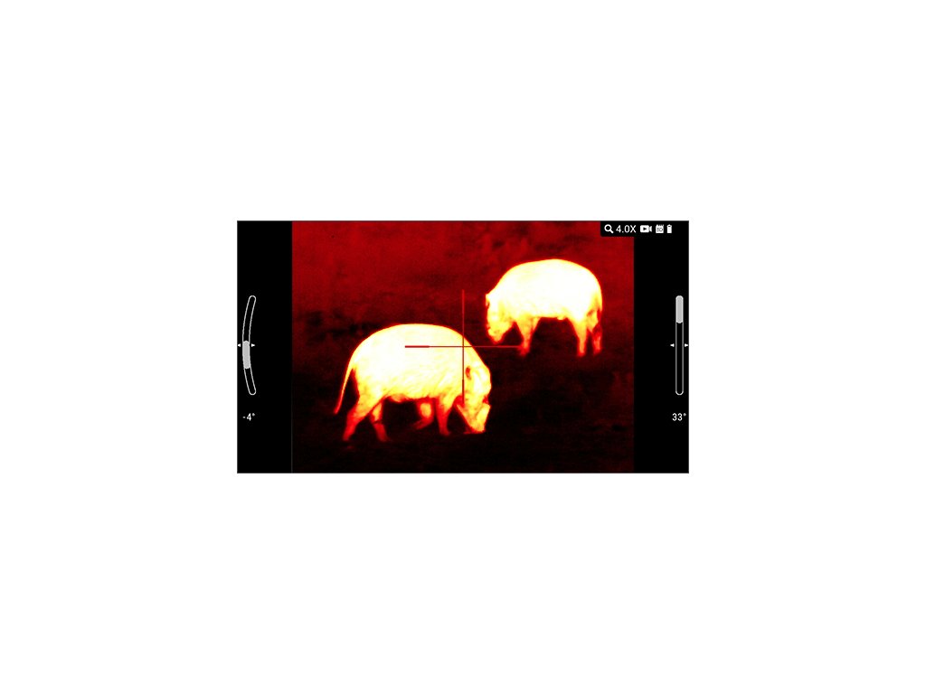 12 mm objektív vyobrazuje objekty aj s tými najmenšími detailami, vďaka čomu nebolo rozpoznávanie nikdy ľahšie. Ergonomické prevedenie zameriavača s intuitívne usporiadanými a jednoducho ovládateľnými tlačidlami poskytuje rýchlu a spoľahlivú manipuláciu v každej situácii. Zabudované funkcie efektívne uľahčujú nastavenia tak, aby sa zameriavač čo najlepšie prispôsobil každému lovcovi. Možnosť výberu farebných paliet je samozrejmosťou. A to, White Hot, Black Hot a množstvo iných farebných prevedení. Nechýba ani výber spomedzi viacerých zámerných bodov a ich farieb.