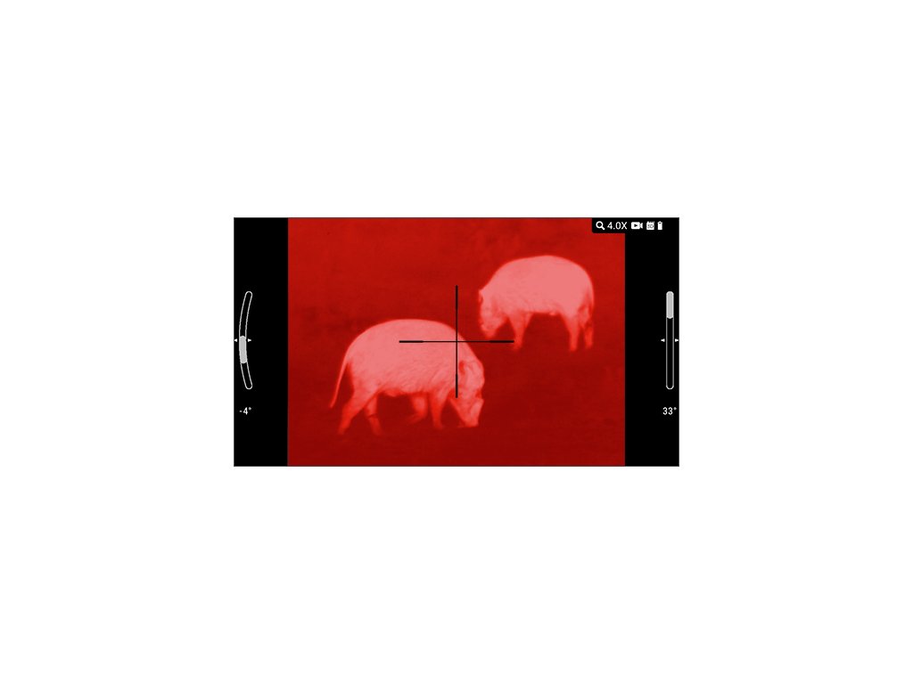 19 mm objektív vyobrazuje objekty aj s tými najmenšími detailami, vďaka čomu nebolo rozpoznávanie nikdy ľahšie. Ergonomické prevedenie zameriavača s intuitívne usporiadanými a jednoducho ovládateľnými tlačidlami poskytuje rýchlu a spoľahlivú manipuláciu v každej situácii. Zabudované funkcie efektívne uľahčujú nastavenia tak, aby sa zameriavač čo najlepšie prispôsobil každému lovcovi. Možnosť výberu farebných paliet je samozrejmosťou. A to, White Hot, Black Hot a množstvo iných farebných prevedení. Nechýba ani výber spomedzi viacerých zámerných bodov a ich farieb.