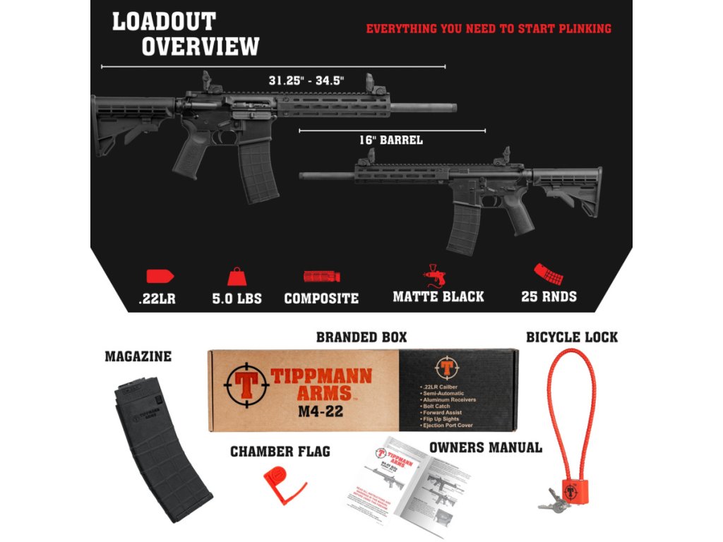 Či už hľadáte nástroj na súťaž, tréning alebo len čistú radosť zo streľby M4-22 LTE vás okamžite vtiahne do sveta AR-15. Je ľahká ako pierko, no bez kompromisov v odolnosti či výkone. Streľba s ňou je jednoducho zážitok. Kompaktné rozmery a precíznosť spracovania stavajú tieto pušky na vrchol spoľahlivosti, kde každý výstrel potvrdzuje ich kvalitu. Parametre: Dĺžka hlavne: 406 mm (16 in) Závit na ústí hlavne: 1/2 x 28 Celková dĺžka: 794 - 876 mm Kapacita zásobníka: 10 Stúpanie vývrtu hlavne: 1:16 Picatinny lišta: áno Pažba: polymér Hlaveň: Fosfátovaná matná čierna Hmotnosť: 2.27 Kg Viac na: https://tippmannarms.com/tippmann-arms-m4-22-lte/Dodatočné parametre