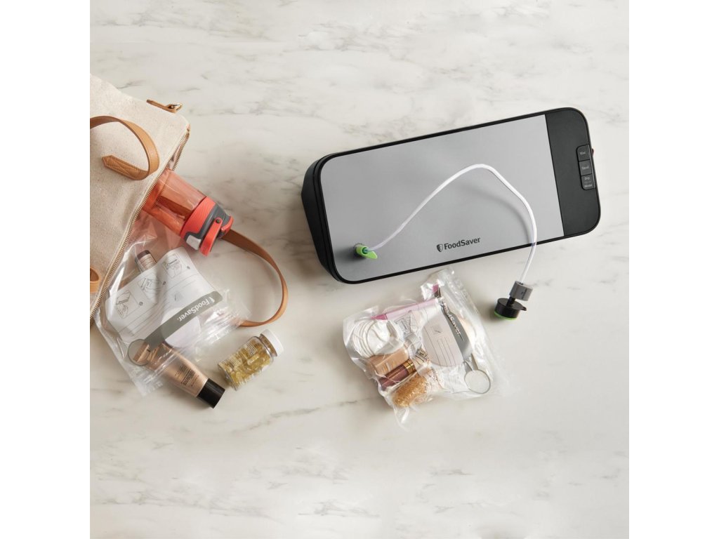 - Kompatibilná s rôznymi typmi vreciek a nádob: Zváračka je kompatibilná s vákuovacími vreckami a nádobami FoodSaver.