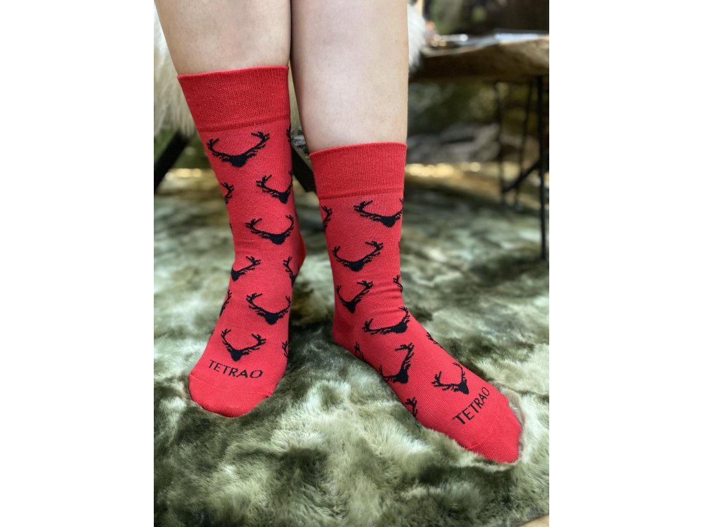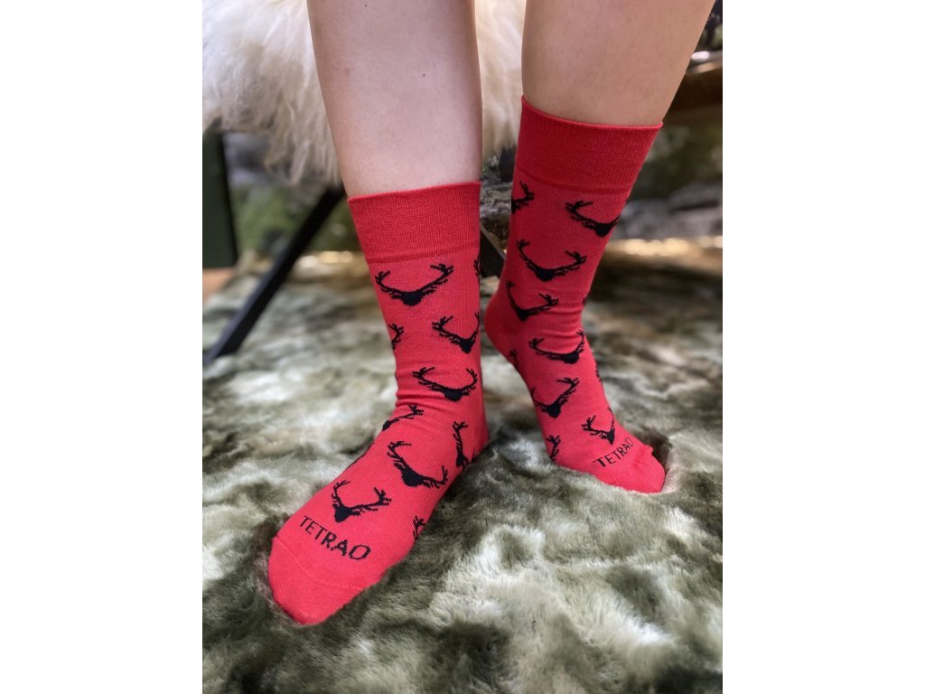 Veselé ponožky TETRAO červené s hlavou jeleňa 25-29