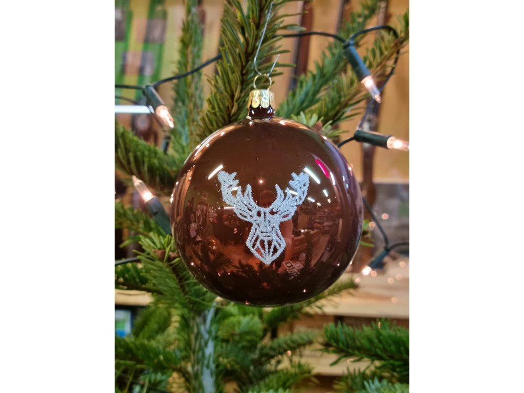 Vianočné gule TETRAO lesklá hnedá - jeleň 6 ks