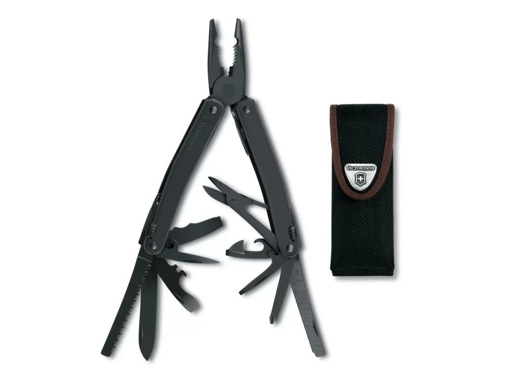 Multifunkčné náradie obsahuje: 1. tenké kliešte 2. veľká uzatváracia čepeľ 3. otvárač na fľaše so skrutkovačom 4. nožnice na tenký a mäkký drôt až do 40 HRc 5. otvárač na konzervy 6. skrutkovač 6 mm 7. skrutkovač 2 mm 8. ohýbač drôtov 9. dierovač, výstružník 10. viacúčelový hák 11. nožnice 12. pílka na drevo 13. pílka na železo 14. pilník na železo 15. krížový skrutkovač 16. dláto a škrabka čepeľ na pozdĺžne rezanie izolácie drôtov 17. pozdĺžný rezací nôž na káble 18. priečny rezací nôž na káble 19. odstraňovač izolácie drôtov 20. otvor na pripevnenie vývrtky 21. otvor na lanko 22. puzdro na opasokDodatočné parametre