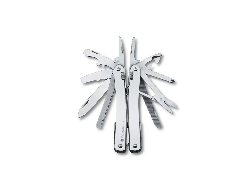 Multifunkčné náradie obsahuje: 1. tenké kliešte 2. skrutkovač 2 mm 3. skrutkovač 3 mm 4. nožnice na tenký a mäkký drôt až do 40 HRc 5. otvárač na fľaše 6. skrutkovač 6 mm 7. páčidlo 8. čepeľ so špičkou 9. nožnice 10. pilník na železo 11. pílka na železo 12. pílka na drevo 13. dierovač, výstružník 14. krížový skrutkovač 1+2 15. dláto a škrabka 16. čepeľ na pozdĺžne rezanie izolácie drôtov 17. ohýbač drôtov 18. odstraňovač izolácie drôtov 19. čepeľ na točité rezanie izolácie drôtov 20. otvárač na konzervy 21. viacúčelový hák 22. kožené puzdro 23. otvor na pripevnenie vývrtky 24. nožnice na tvrdý drôt 25. otvor na lanko 26. desať samostatných pružín 27. poistkaDodatočné parametre