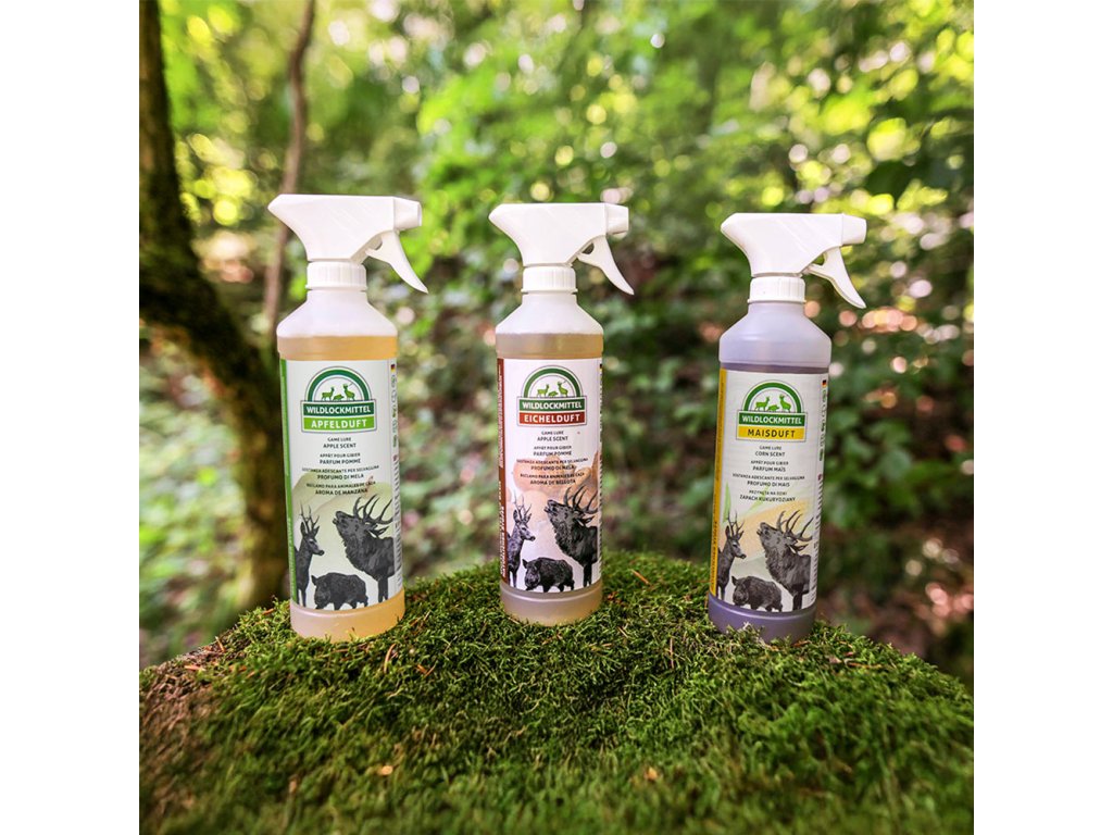 Intenzívna vôňa vábidiel priláka zver na veľkú vzdialenosť. Vhodné je aj použitie na prekrytie vlastného zápachu, stačí len postriekať posed. Návnady dodávame v 500 ml fľašiach. K dostaniu je kukuričná, jablková a žaluďová vôňa. Vnadidlo stačí jednoducho nastriekať na kríky, alebo na trávu. Jednoduchá aplikácia v rozprašovači. Intenzívna vôňa vnadidla priláka zver z veľkých vzdialenosti.