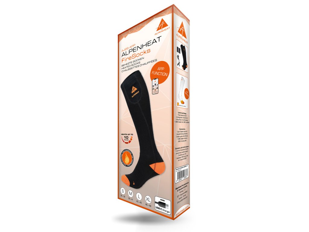 Alpenheat vyhrievané ponožky ponúkajú vysoký komfort pri nosení a udržujú nohy v príjemnom teple. Vykurovacie teleso s uhlíkovými vláknami je inštalované v oblasti prstov a je prevádzkované prostredníctvom malej kompaktnej batérie, ktorá sa uchytí buď na lýtko alebo na topánku pomocou pásu na suchý zips. Vyhrievané ponožky Alpenheat sú k dispozícii v štyroch veľkostiach a dosahujú výhrevnosť po dobu 8-16 hodín. Vyhrievané ponožky sú vhodné aj do lyžiarok pre udržanie nôh v príjemnom teple. Naviac sú vysoké 30-39cm (podkolienky), takže v lyžiarkach netlačia. Aj po celom dni lyžovania budete mať pocit akoby ste mali obuté pohodlné topánky.