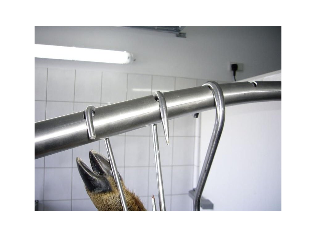Zahnutá tyč je vyrobená z vysoko kvalitnej nehrdzavejúcej ocele a je ideálna na rozrábku diviny. Má 12 diagonálnych zarážok pre zavesenie hákov, na ktoré sa následne upevní ulovený kus. Presúvanie hákov do iných polôh je veľmi jednoduché, stačí hák jemne podvihnúť a presunúť ho do želanej polohy. V strede tejto kvalitnej tyče sa nachádza praktické oko na zavesenie. Tyč je dlhá 100cm a má hmotnosť 1350g. Odporúčaná nosnosť je 150 kg.